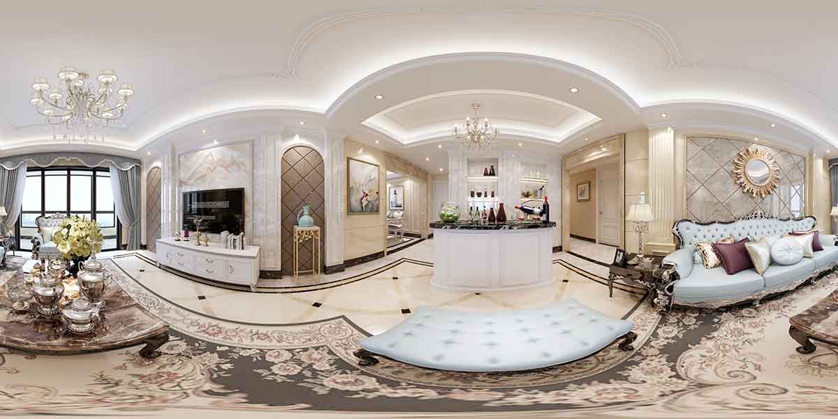 第一步首先在我們的3D效果圖面完成渲染之后,一定要渲染面確保當(dāng)前的圖紙的縱橫比,出圖縱橫比是2 : 1的比例,然后在VR里面的相機(jī)必須是由默認(rèn)改為球形勾選覆蓋式,然后將我們45度改為360度這樣子渲出來(lái)。